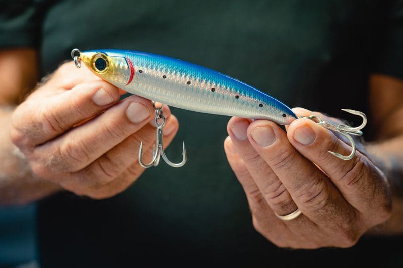 Use these offshore fishing lures on the run out tide when the reef drains on larger tides closer to the moon. I like to change trebles to single hooks as they are often easier to get out of the fish and don’t inhibit the action as much.