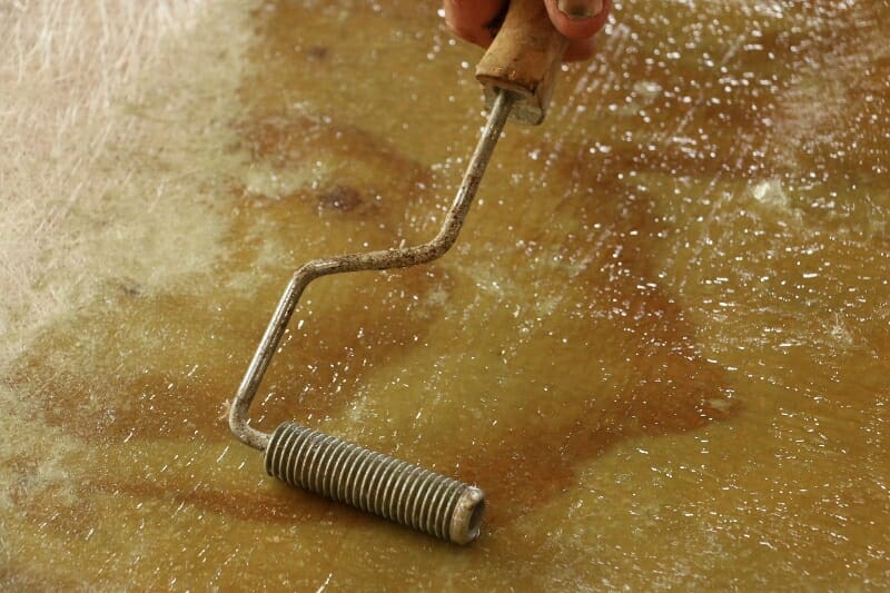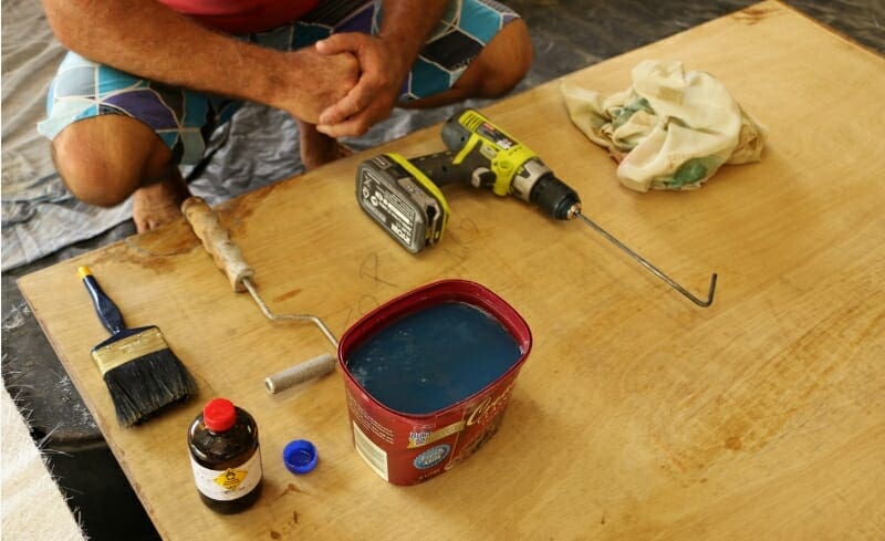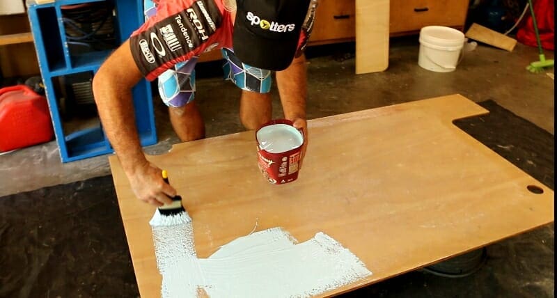 Firstly I coat the underside with polyester resin to seal it.