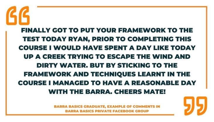And while I’m not guaranteeing that you will achieve the same results, nobody can (if they do they are probably lying) – the concepts I have taught in the Barra Basics system have helped these fishers turn a frustrating hobby into satisfying (and thrilling) barra catches. And now you can learn the same techniques.