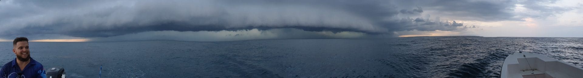 I had an experience I will never forget back in Feb 2016 during the wet/storm season. Nothing special at the start weather report was good. I got up and checked the obs at Arlington. All was good and the visuals were fine other than some lightning a long way off to the south. We headed out of Cairns to Sudbury reef and the weather was good and the seas were smooth. As we passed the cay we saw that there were people who had camped there overnight and there was a gazebo they were using for shelter. We headed to our fishing spot another 5 miles on.