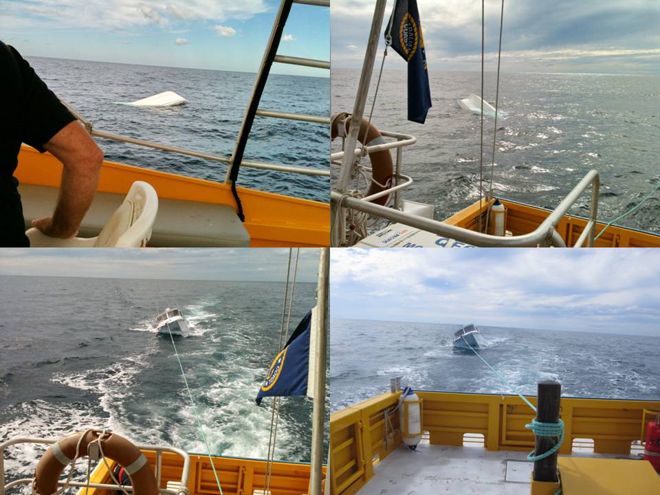 black! I was trapped by the large esky which was spewing fish out of it. Thankfully I eventually made my way out of the boat on top of the water and climbed onto the upturned hull. There was only a metre of boat out of the water and because it was Monday morning after a flat calm weekend, I did not expect a boat to come by. But one did! I could see it’s nav lights first both red and green then only green then none. They didn’t see or hear me. Not long after daylight I could see another boat coming straight towards me but stopped 100 mtrs away. I was yelling as loud as I could eventually they heard me and came to my aid. They had thought some silly bugger was on a JetSki 20 miles east of Mooloolaba.