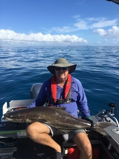 Once the seas dropped to about 1m again about 30km off Dundee we pulled up to put some more fuel in the boat and had another fish. Only a few small sharks. We then headed back in closer to Dundee and got onto some blue salmon to finish the day. While in close fishing I had a call from a mate in Darwin asking if we were OK as he saw an article that a boat had to be rescued by the Care Flight chopper when they were only 30km off Dundee and lost their navigation.